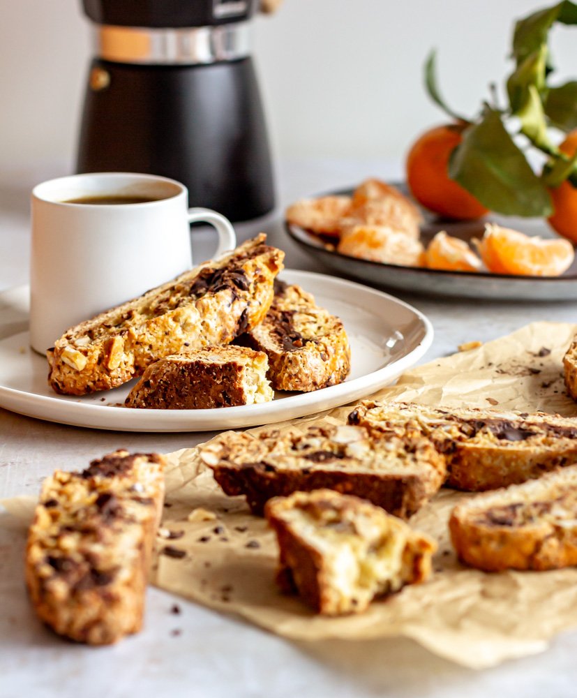 Biscotti with Dark Chocolate, Hazelnuts, and Clementine